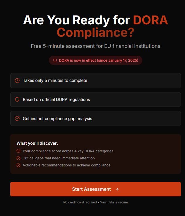This is where reliable compliance gap analysis becomes central and SecurityWall fill. DORA Gap Analyzer is free and takes only 5 minutes to complete and totally based on official DORA regulations to get instant compliance gap analysis.