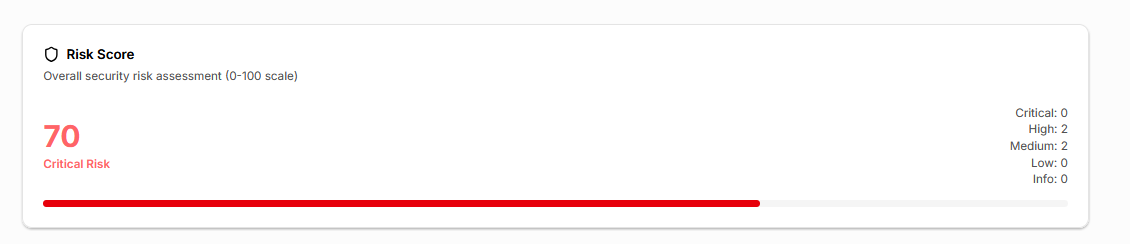 Instead of forcing reviewers to interpret dozens of individual signals, the JWT analyzer aggregates findings into a security risk score on a 0–100 scale.