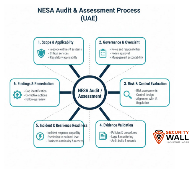 Each area is assessed based on how well controls are defined, implemented, operated, and evidenced. A detailed understanding of NESA compliance requirements is essential before entering this phase.